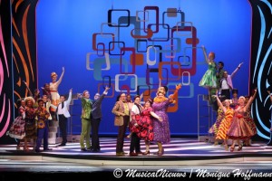 Er waren programmaboeken te koop in de foyer en de hele show is - evenals de posters van het castbord - in vrolijke kleuren en pastelkleuren en qua kleding zag iedereen er tiptop uit, je waande je in de jaren 60, het tijdperk waarin het verhaal zich afspeelde inclusief hippe kleding en glitter.